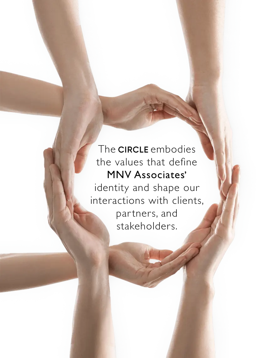 At MNV Associates, we embrace the CIRCLE as a representation of our unwavering commitment to excellence and integrity. Each aspect captures a facet of our ethos, ensuring we exceed expectations for all our clients.